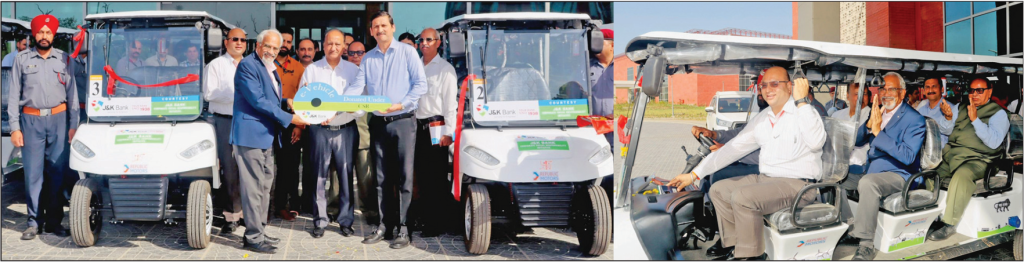 J&K Bank provided four electric vehicles to AIIMS Jammu to enhance mobility support for patients, women, and individuals with disabilities. These e-vehicles offer a convenient and accessible mode of transportation within the hospital premises spread across a vast area, ensuring that patients and visitors can move around with ease and comfort, especially those with mobility challenges. This initiative aligns with the Bank’s commitment to improving healthcare accessibility and supporting inclusive infrastructure.