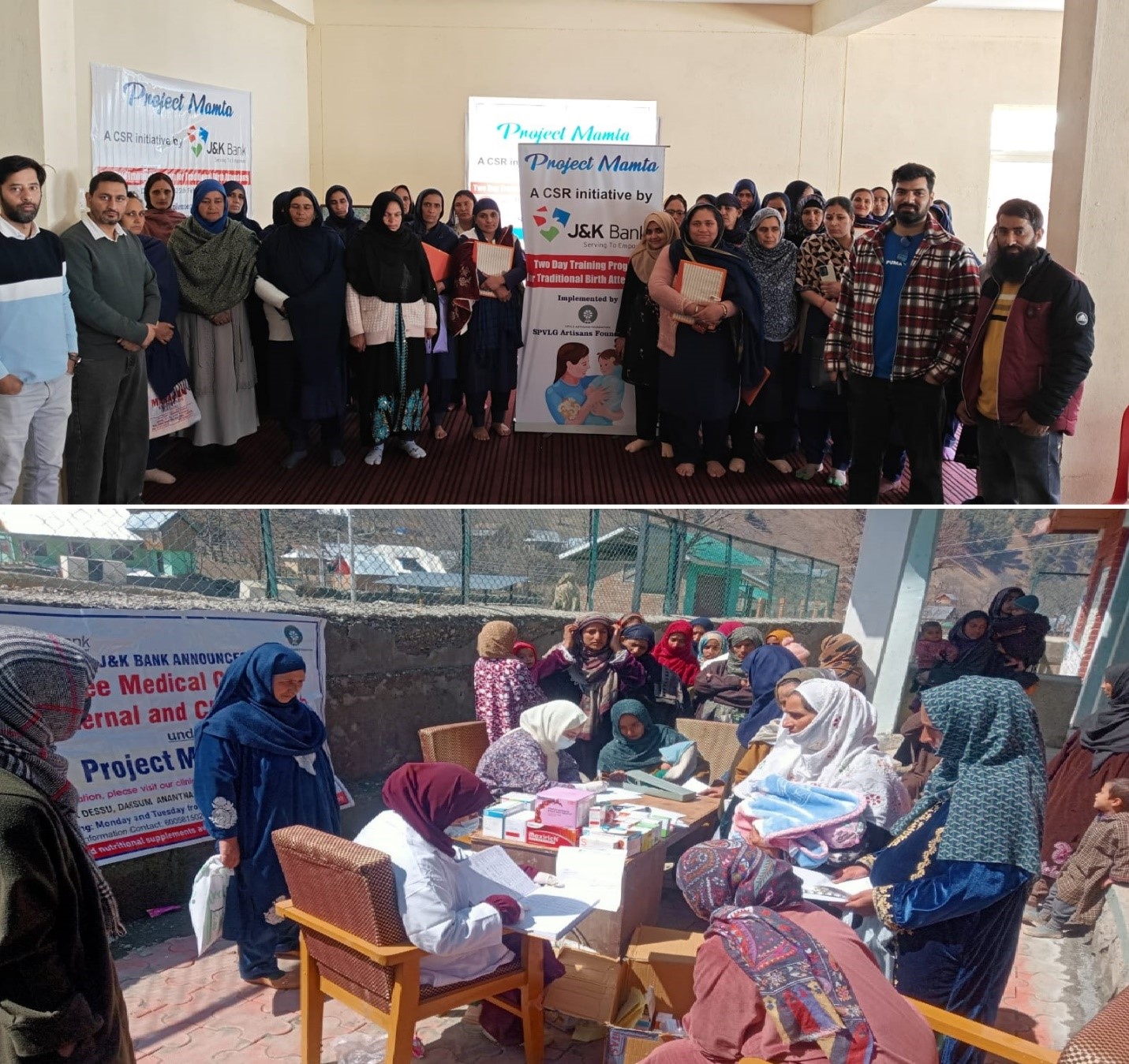 To support maternal and child health in underprivileged areas, J&K Bank initiated a project targeting tribal communities in the Anantnag and Rajouri districts. In collaboration with healthcare professionals and NGOs, training was imparted to birth attendants, empowering them with knowledge and skills for safe deliveries. Free nutritional supplements and essential medicines were provided to pregnant women, alongside routine diagnostic tests. The initiative aimed to address high maternal and infant mortality rates, while ensuring healthcare access to the most vulnerable sections of the population.