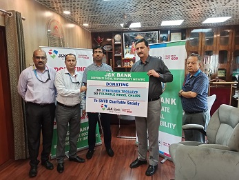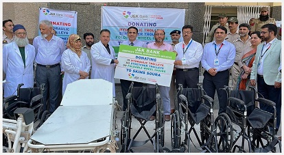 A robust healthcare system is essential for any society, and given the significant pressure on government-run healthcare facilities, especially in J&K, it has become crucial for responsible corporates like J&K Bank to step up. By supporting the Government's efforts through innovative CSR projects, J&K Bank aims to complement public health initiatives. In this context, a project was developed to enhance the existing healthcare infrastructure by providing patient-transport trolleys and wheelchairs to various government hospitals in J&K. Under this initiative, the Bank provided following items to SKIMS Soura, SMVD Charitable Society, GMC Anantnag, B&J Hospital Srinagar: